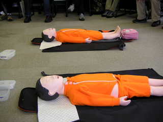 日本赤十字の指導員の方に教えていただく。三角巾の使い方