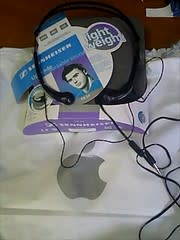 目的は大してなかったのですがipod mini純正のインナーイヤー型のヘッドフォンが耳に合わないので音作りでは定評のあるドイツのゼンハーザー社の軽いヘッドフォンを買いました。密閉式のように圧迫感もないので長時間使っても支障がなさそうです。 パッケージのイラストがいかにもお堅いドイツ人といったイメージです。日本人だったらこんなイラストは似合わないな…