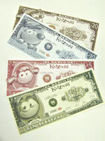 子供たちは入場した時にトラベラーズチェック、さらには働いた対価としてキッザニア内のお金「キッゾ」を受け取る。トラベラーズチェック→キッゾへの変換藻ありだという。受け取ったキッゾは銀行で預金できる。(写真はキッゾ)