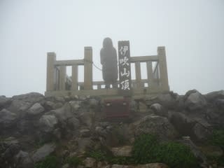 本日は滋賀県と岐阜県の県境にある伊吹山(標高1377m)へ。標高が低いにもかかわらず山の形がきれいなことから100名山に数えられている。 関ヶ原にも近く冬は雪が多いこともあるのか山麓にスキー場があり、1合目~5合目あたりまではスキー場のゴンドラの脇を進む。5合目から頂上も高い植生が無いために景色は最高、のはずだったが天気が悪く5合目以降は霧+雨で頂上に着き次第さっさと退散してきた。伊吹山は別ルートで9合目ぐらいまで車でいけるため、観光地化されている。