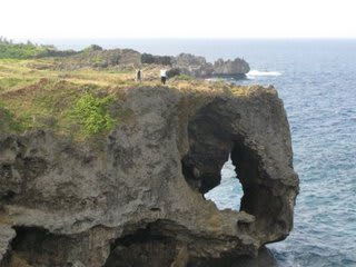 万座毛、波による侵食により断崖が切り抜かれたようになっています(野崎氏撮影)