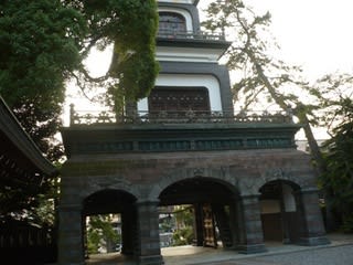 尾山神社:中心部にあり加賀藩主 前田利家を祭った神社。神門と呼ばれる特徴的な門はオランダ人ホルトマンの設計。日本で始めて避雷針の備わった建物とか。