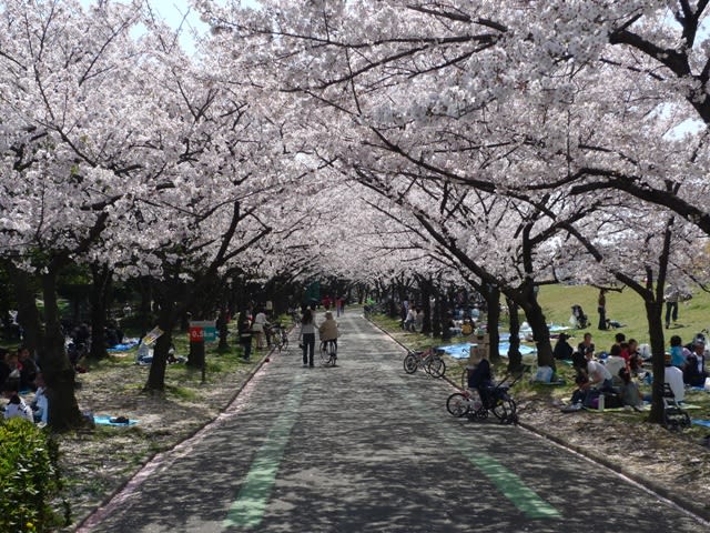 朝から晴天で日中は半袖でもいけるような陽気。近場の庄内緑地公園にてお花見に行ってきました。今まで行った中ではもっとも混んでいたような感触です。