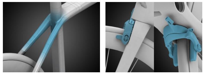 TTバイクなどは扁平の翼形状になってますが自転車というのは前からだけでなく横風/ななめ風のシチュエーションも多いので横からの投影面積の大きくなってしまうこの形状は少し疑問でした。でスコットとかはそこらへんも考えたフレーム形状にしておりTrekも同じように完全な翼形状ではなく翼の後方部分を切り離してしまった形としています。これは横風対策で完全な翼形状にできないので翼の途中で切り離してどのアングルからの風に対しても最大のエアロ効果をつけようというのとそれでもなお正面からの風で発生する渦による効力の増加をなるべく抑制するという目的です。実はこれはあのプリウスのカマボコっぽい形状と思想は同じ。そもそもこのKammtail形状自体は1930年代からあるものなのですが・・・