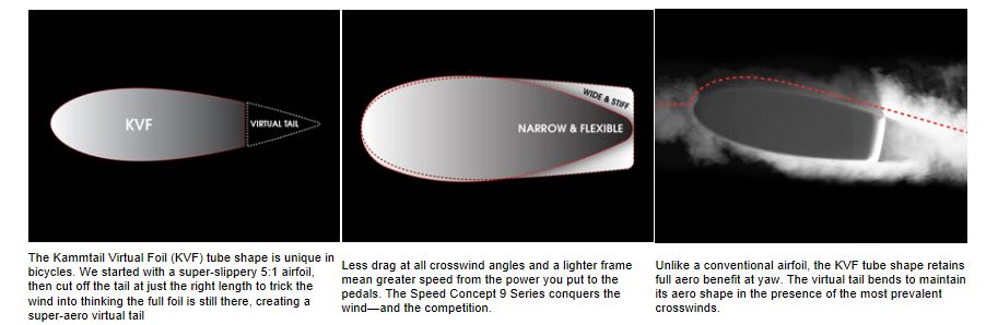 Trekは近年、KVF(KammtailVirtualFoil)という形状のフレーム形状を取り入れています。