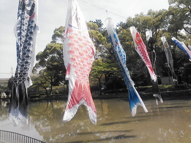 気持ちの良い春の天気。午前中は中村図書館へ行ってきましたが公園でこいのぼりを見つけました。