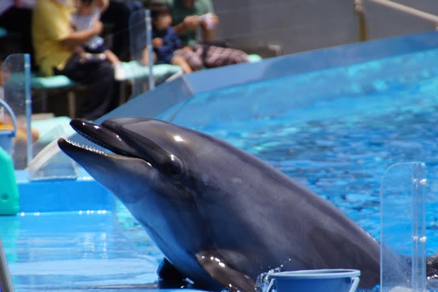 久しぶりに名古屋港水族館へ。考えてみれば夏にこの水族館に来たことがあまりなかったのですがイルカショーがほかの季節のものとは異なりイルカに乗ってジャンプとかサーフィンといった変わったものになってました。ここのプールは今まで経験した中でも一番大きいと思うのでその大きさを存分に生かしたショーだと思います。人も乗ってジャンプするのですが軽く5メーターぐらい飛んでいるので人も命がけ。それにしてもいつ見てもイルカの泳ぎはきれいだと思います。 シャチの赤ちゃんもいつのまにか大きくなり大人に近くなってきたようです。イルカと比べると水槽が狭く感じてしまうのですがまあ仕方がないのでしょう。