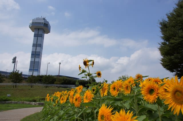木曾三川に咲くひまわり