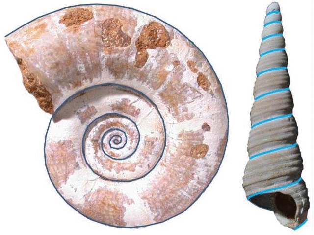 軟体動物は節足動物に次ぐ種を持つ動物。昆虫と似ていますが貝が代表的に記されるようにかたい殻を以て身を守る生物です。貝は対数らせんの構造を持っていますがここにも秘密が隠されており中身の拡大に大きな構造を変化させずに対処するための方法として巻き始めからどの状態で切り取っても変わらないプロポーションを保てる構造を取り入れたということでアンモナイトといったわかりやすい巻貝の例だけでなくアサリなどの2枚貝の仲間も1枚づつ対数らせん構造をしているわけです。