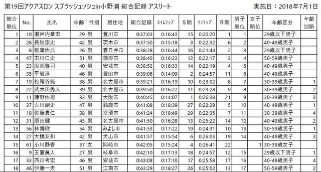 アスリートの部 Result上位 ↓