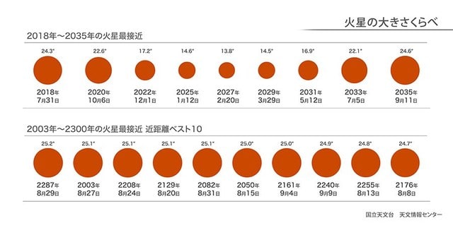 これから、今までの火星大きさ比較