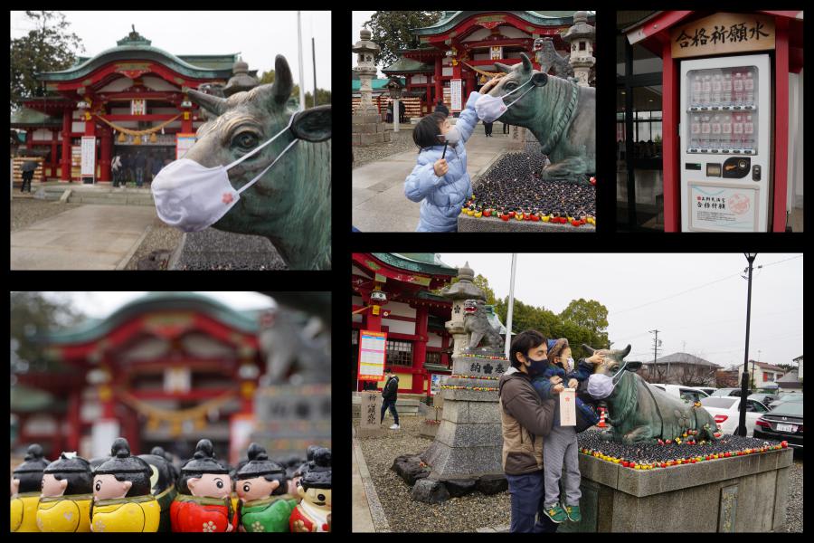 雨の土日でした。今年は初詣も人込みを避けていかなかったのでいまさらながらですが上野天満宮(名古屋天神)に初詣に行ってきました。自分もなんだかんだいってずっと受験関連の時は大宮天満宮に祈願してきたので道真公には感謝しっぱなしです。そして天満宮と言えば梅と使いの牛がトレードマークですが牛は時節柄?マスク着用。