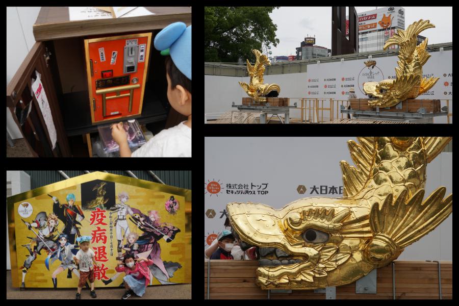 少しだけ触ることが出来ますが金らしく柔らかく温かな?質感でした。2005年には愛・地球博で地上に降りてきたそうですがなかなまじかで見ると迫力がありそして姿はやや漫画チックでもあります。やはり名古屋市民にとっては金鯱はシンボルでグランパスエイトの名前、かつてあったプロ野球チーム、市営交通のマスコットなど様々なところに使われています。シャチハタのスタンプも名前の由来はこの鯱からきているそうです。海にいるシャチは明治時代になってあのように呼ばれるようになったそうでこの鯱(想像上の生き物)が先輩です。