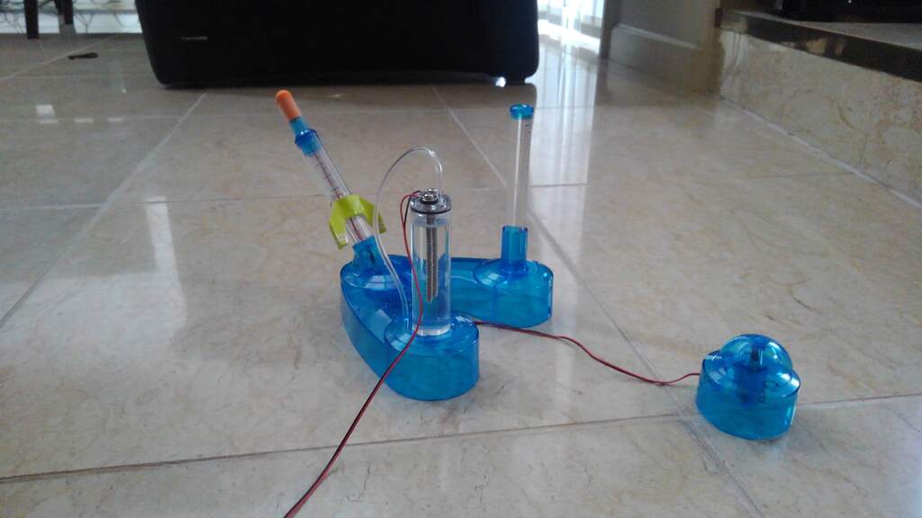 水の電気分解による水素の形成方法、電磁誘導による発電機とモーターの仕組み、気体の圧力のかかり方など物理と化学の分野を楽しめる内容です。クリーンエネルギーの一つである水素というテーマもありなかなか考えられた内容だと思いました。 さらにロケットの飛行距離を形や角度などを変えながら実験することもでき、とても考えられた内容と感心してしまいました。