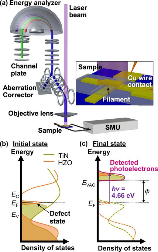 次世代の不揮発メモリの候補である強誘電体メモリの材料の候補の一つであるHfO2系の強誘電体キャパシタの破壊過程を可視化するすることに成功したとの論文です。レーザー励起光電子顕微鏡(in situ laser PEEM )によって、絶縁破壊後の電気伝導パスだけでなく絶縁破壊直前のリーク電流の増加領域の可視化しており、破壊直前にキャパシタ内の広い範囲で抵抗が変化その後、伝導パス形成されて絶縁破壊される様子がわかってきたとのこと。キャパシタの面積はum単位でこの計測系の空間分解能は 28 ~ 108 nmということなのであともう1桁低い領域での分析が欲しいところですがそれでもなお興味深い手法かと思います。非破壊で欠陥の前兆なる動向や感度をいろいろなものを振って調べたり、粒界などに含まれる欠陥の種など明らかにすることに役に立つのではと思います。