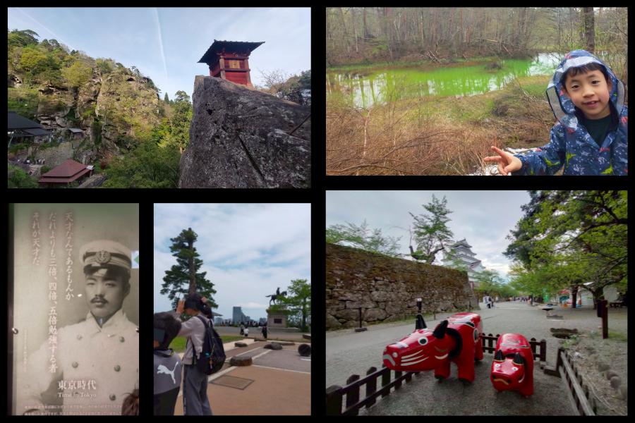 今年のGWは去年の高知旅行に引き続き自分がたどった場所とのことで大学、大学院時代の8年を過ごした東北地方へ旅行へ行きました。と言っても自分が住んでいた仙台+山形、福島で良く訪れていた南東北の一部のエリアです。経路としては山形空港>米沢(上杉まつり)>会津若松(鶴ヶ城)>裏磐梯(宿泊、噴火記念館、五色沼)>猪苗代(野口英世記念館)>遠刈田(宿泊)>蔵王(お釜は到達できず)>仙台城、東北大>山寺>天童(宿泊、駒づくり体験)>山形市内(文翔館)>山形空港 といった感じで結構大忙しの4日間でした。特に(意外に)好評だったのは猪苗代の野口英世記念館と仙台城のVRでした。それにしても今思うとトライアスロンを起点にいろいろな場所に行って貴重な体験できたなあと思います。子供たちにも少しでも何か響くものがあったらよかったかなとは思います。